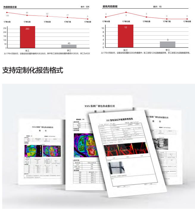 鼠標(biāo)輕輕一點,PdmIR熱像數(shù)據(jù)管理系統(tǒng)自動生成用戶所需的巡檢報表,直觀展現(xiàn)設(shè)備目前的工作狀態(tài)以及巡檢的工作成果。
