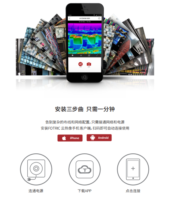 云熱像將智能化和互聯(lián)網(wǎng)深度融合,是基于互聯(lián)網(wǎng)服務的智能熱像監(jiān)控硬件。只需接通電源和網(wǎng)絡,用戶就可在手機上觀看熱像視頻和接收報警信息,方便快捷的享受熱像的技術紅利。